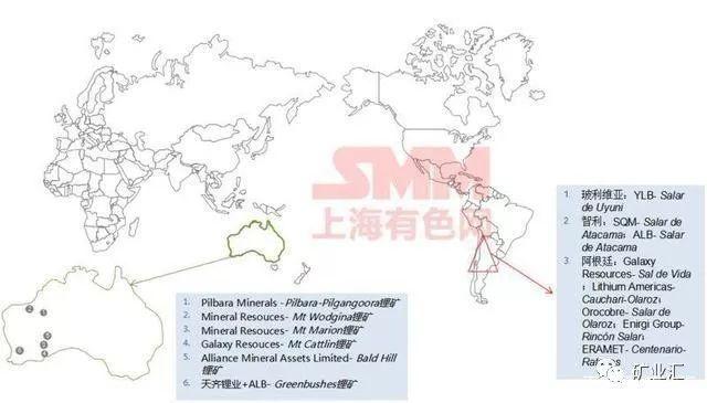 根據(jù)USGS統(tǒng)計(jì),全球鋰資源量超過6200萬噸,主要集中在南美和澳洲,這也是目前全球鋰礦供應(yīng)的主要來源。